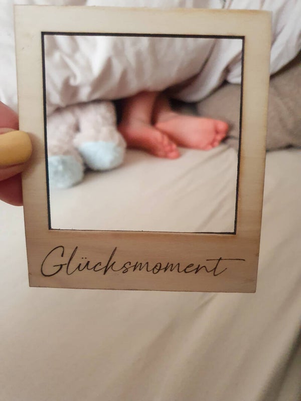Mit diesem schönen Polaroid-Holzrahmen können die schönsten Momente festgehalten werden. Ihr könnt den Rahmen auch mit Loch zum Aufhängen bestellen.