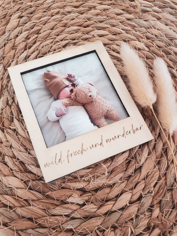 Mit diesem schönen Polaroid-Holzrahmen können die schönsten Momente festgehalten werden. Ihr könnt den Rahmen auch mit Loch zum Aufhängen bestellen.