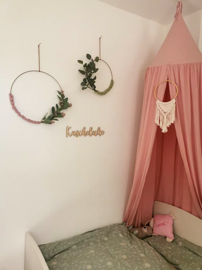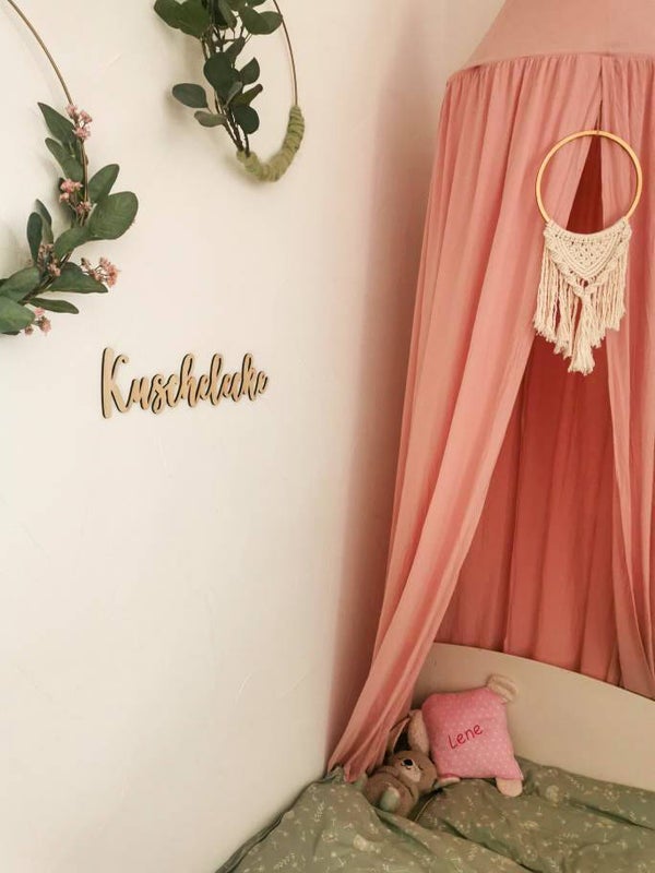 Dieser tolle Schriftzug verzaubert jedes Kinder- und Babyzimmer. Passend über dem Bett oder an anderen Stellen im Raum, wo ihr eure Kuschelecke gezaubert habt. Ein tolles Highlight im Zimmer. Er lässt sich ganz leicht mit Patafix befesitgen.