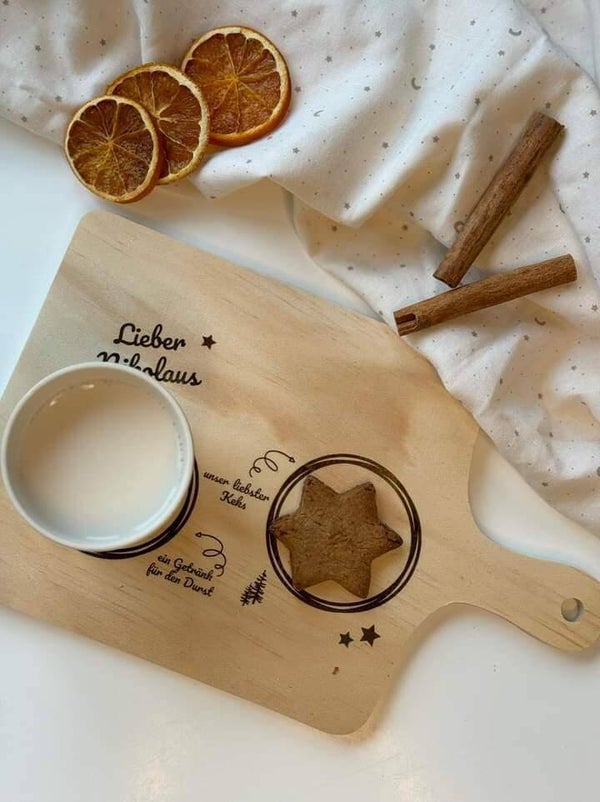 Ein bezauberndes Holzbrett, das ein tolles Weihnachtsaccessoire ist. Es wird Kindern und natürlich dem Nikolaus Freude bereiten! Verziert mit einer wunderschönen Gravur.