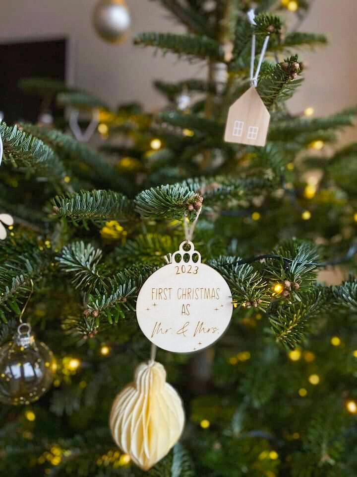 Du bist auf der Suche nach der perfekten Dekoration für den Weihnachtsbaum, ein Geschenk oder eine Idee für ein Erinnerungsfoto? Dann bist du bei dieser Weihnachtskugel aus Holz genau richtig. Das erste Weihnachten als Mann und Frau. Ein ganz besonderes Fest der Liebe.