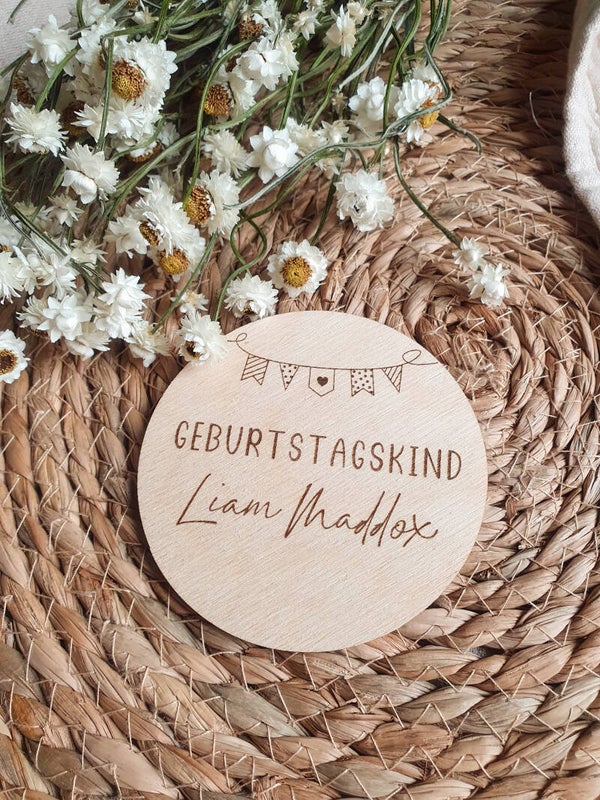HOLZSCHEIBE "GEBURTSTAGSKIND" PERSONALISIERT