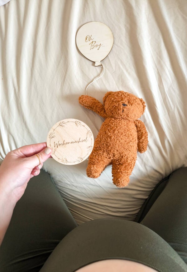 Die niedliche Holzscheibe eignet sich super, um schöne Erinnerungsbilder zu machen.