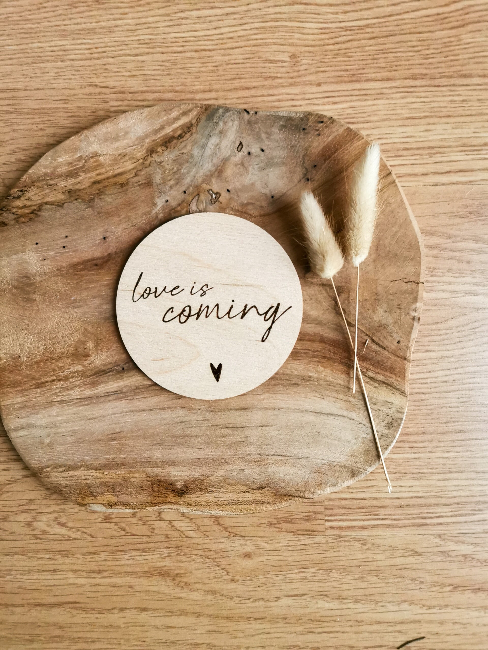 Die niedliche Holzscheibe eignet sich super, um schöne Erinnerungsbilder zu machen.