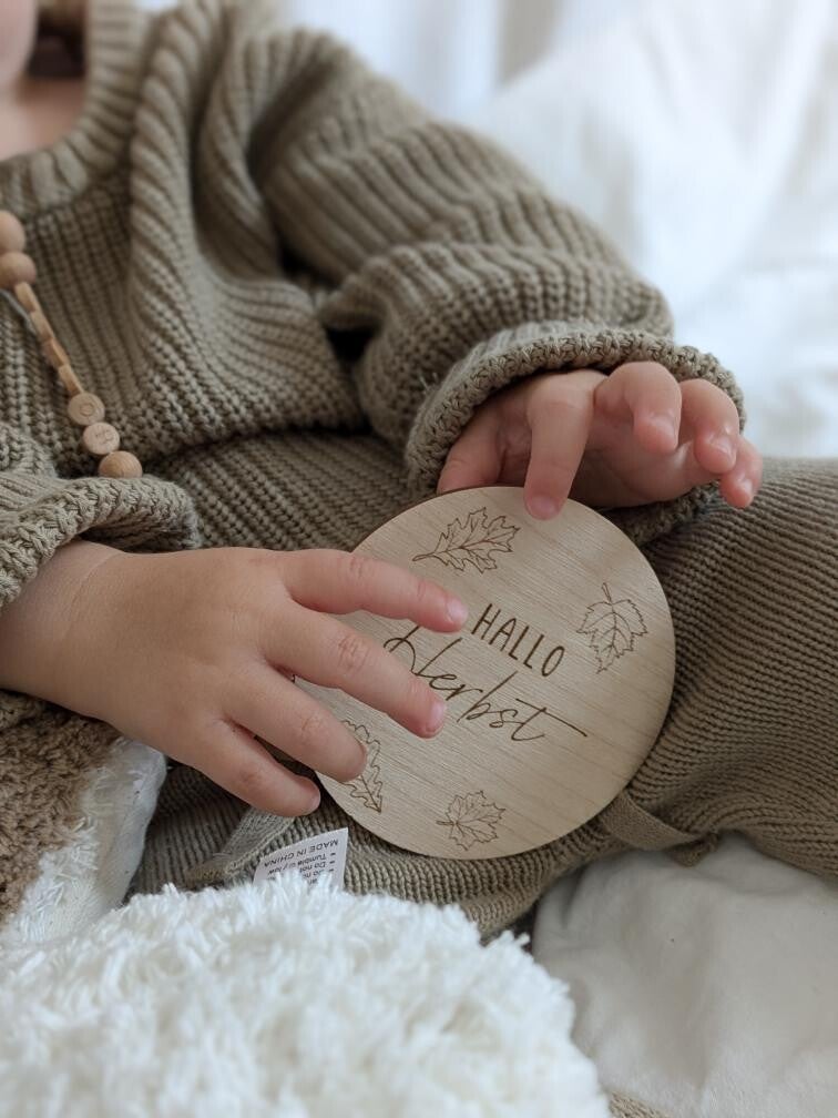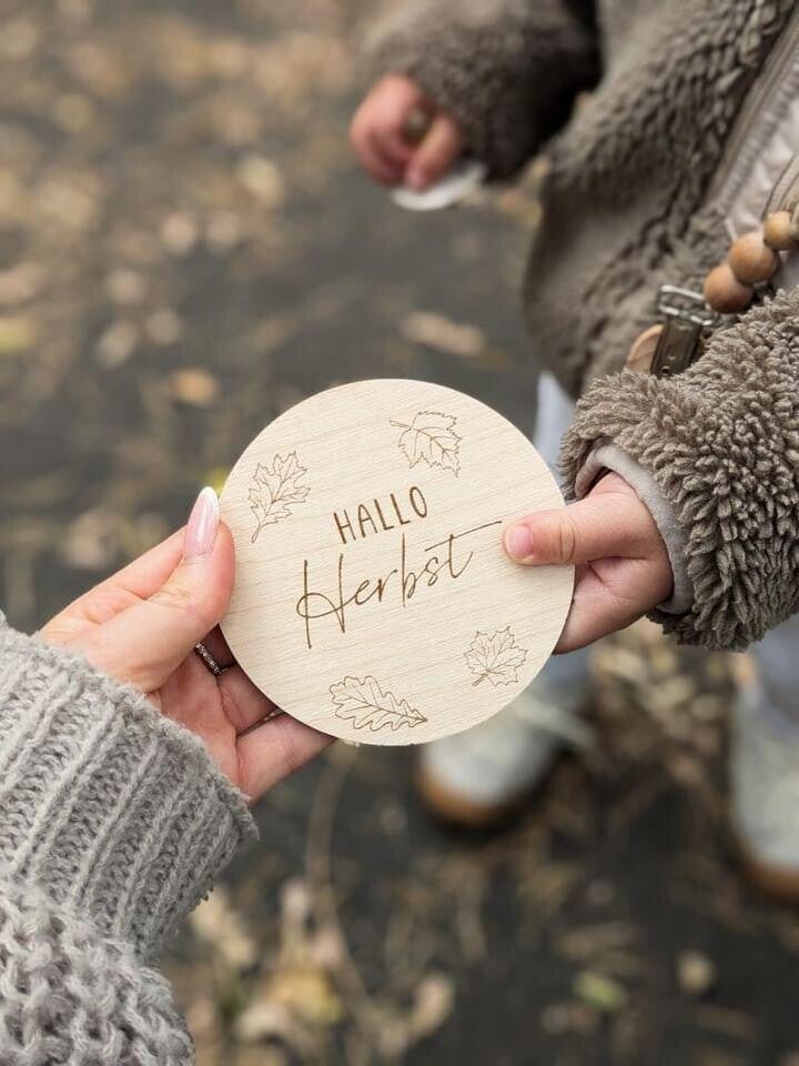 Mit dieser schönen Holzscheibe kannst du den bunten Herbst begrüßen und schöne Erinnerungsbilder machen.